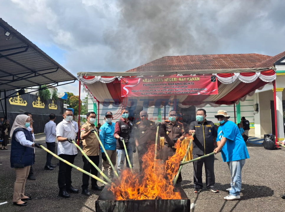 Pemusnahan ini menjadi perhatian karena dihadiri oleh jajaran Forkopimda dan instansi terkait, antara lain Pengadilan Negeri Blambangan Umpu, Polres Way Kanan, BNNK, Lapas Kelas II B, MUI, Dinas Kesehatan, organisasi pers, serta berbagai lembaga anti-narkotika. Keterlibatan berbagai pihak tersebut menunjukkan bahwa pemberantasan kejahatan memerlukan kerja sama lintas sektor.