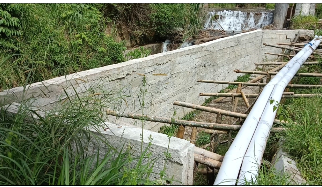 Selain itu, kondisi pipa air yang menjadi bagian penting dalam sistem irigasi juga menuai kritik. Pipa tersebut terlihat menggantung dan hanya disangga menggunakan bambu serta kayu sederhana. Hal ini dinilai tidak mencerminkan kualitas pekerjaan yang layak untuk sebuah proyek pemerintah.